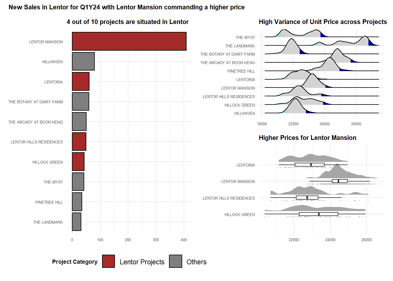 g2 <- g1 + plot_annotation(title = "New Sales in Lentor for Q1Y24 with Lentor Mansion commanding a higher price")